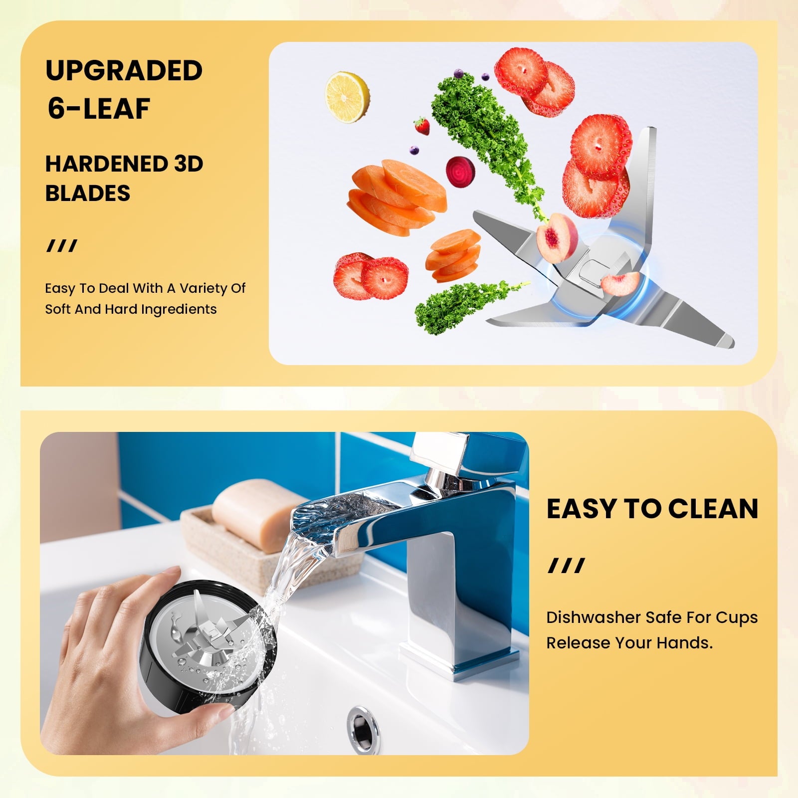 1000W Personal Blender for Smoothies and Shakes, Smoothie Maker with 6 Blades, 2*23 oz Cups, 1*10oz Grind Cup, Portable Blenders for Kitchen