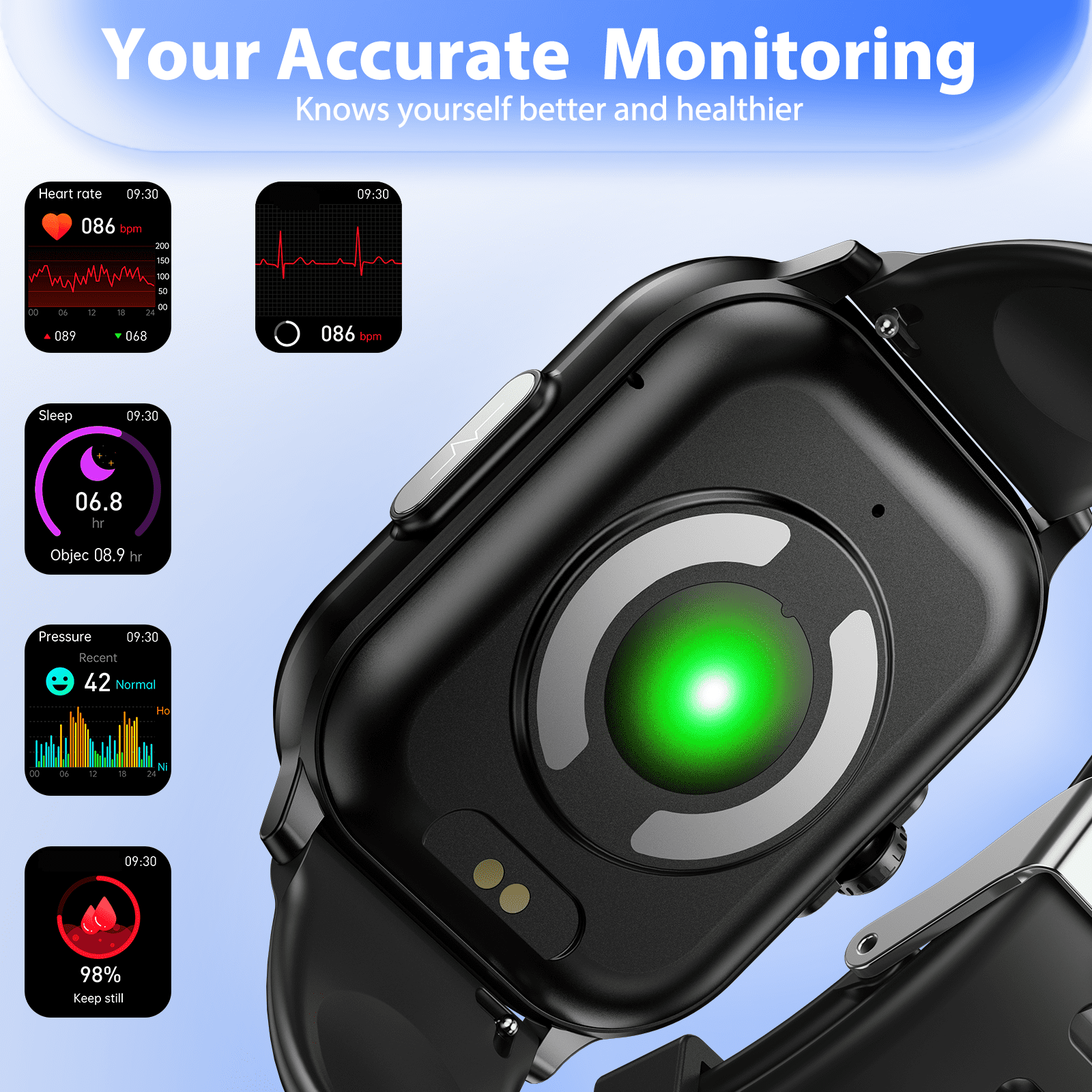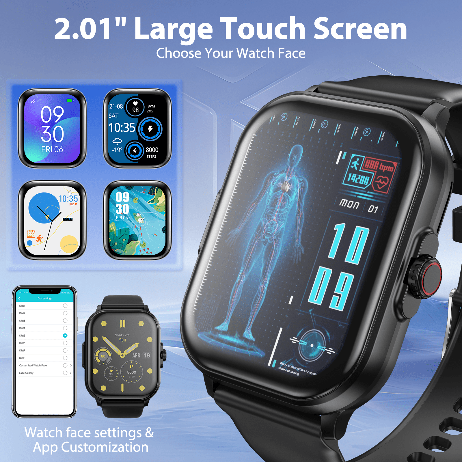 Smart Watch for Women Men, 2.01"HD Screen Fitness Tracker with Bluetooth Answer/Make Calls, IP67 Waterproof/Sleep Monitor/100+ Sport Modes, Smartwatches Compatible Android iOS