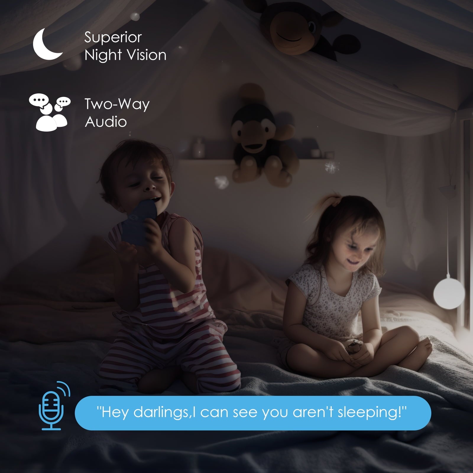 Video Baby Monitor with Camera and Audio, 360-Degree Smart 1080P WiFi Security Indoor Camera with Night Vision