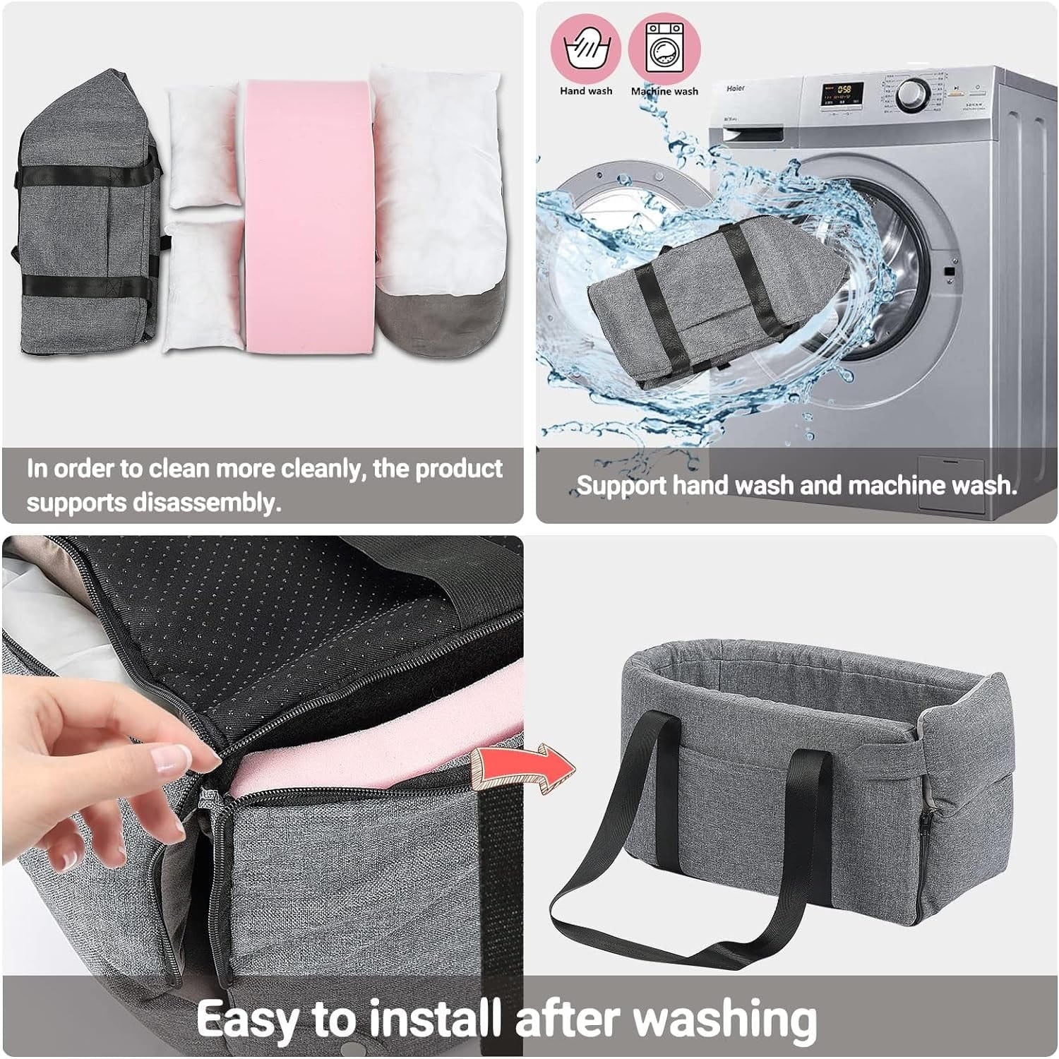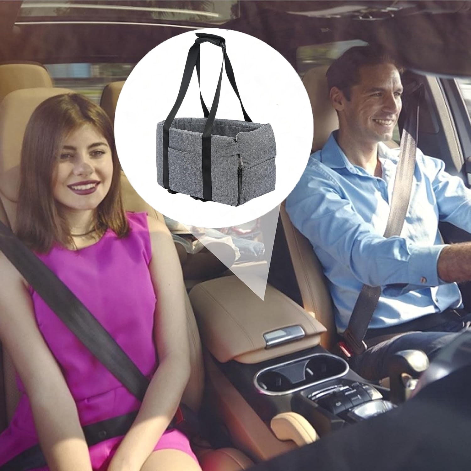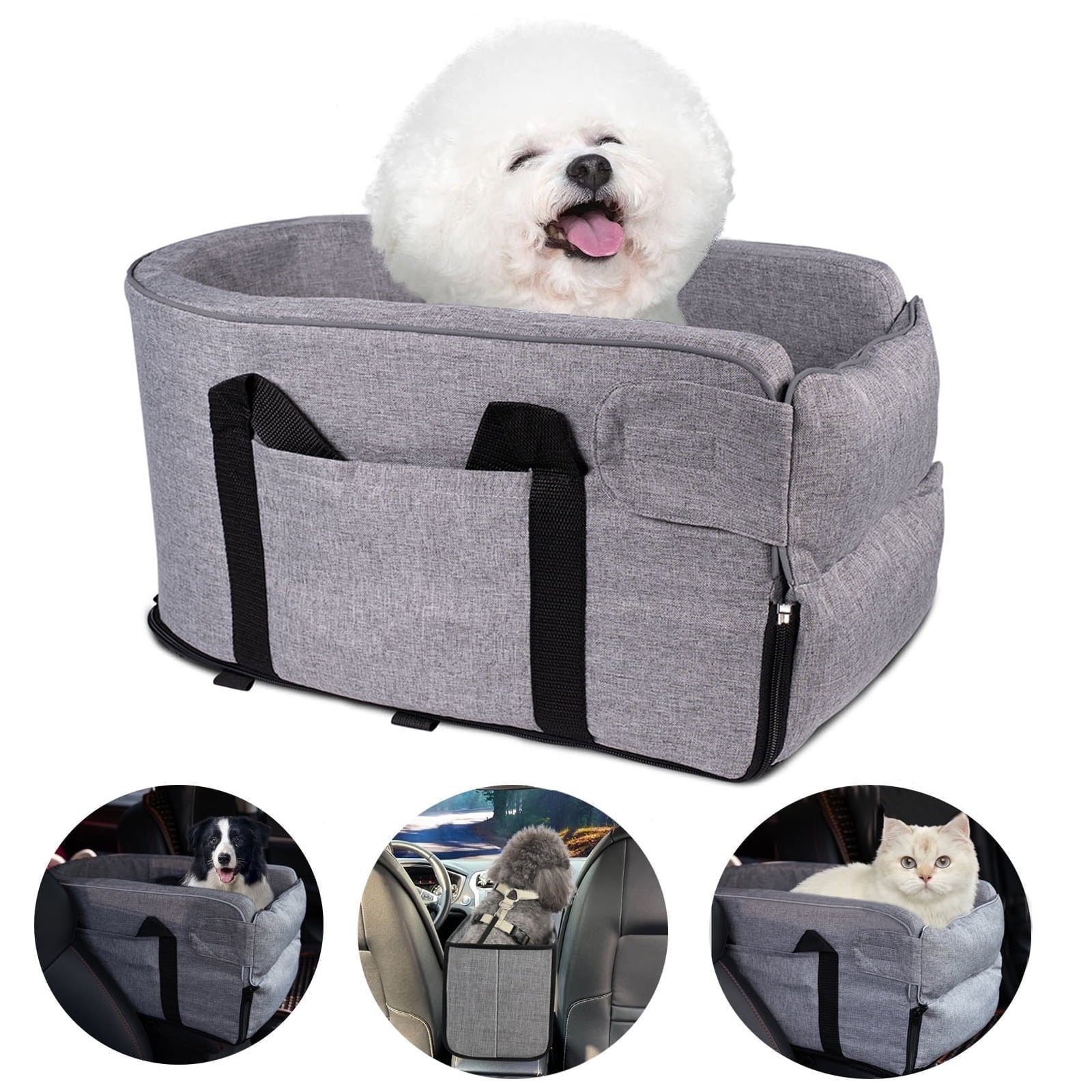 Dog Car Seat for Small Dogs, Pet Booster Seat, Fully Detachable and Washable, with Clip-on Safety Leash, Adjustable Straps for Small Pets up to 15lbs, Travel Carrier Bed, Grey