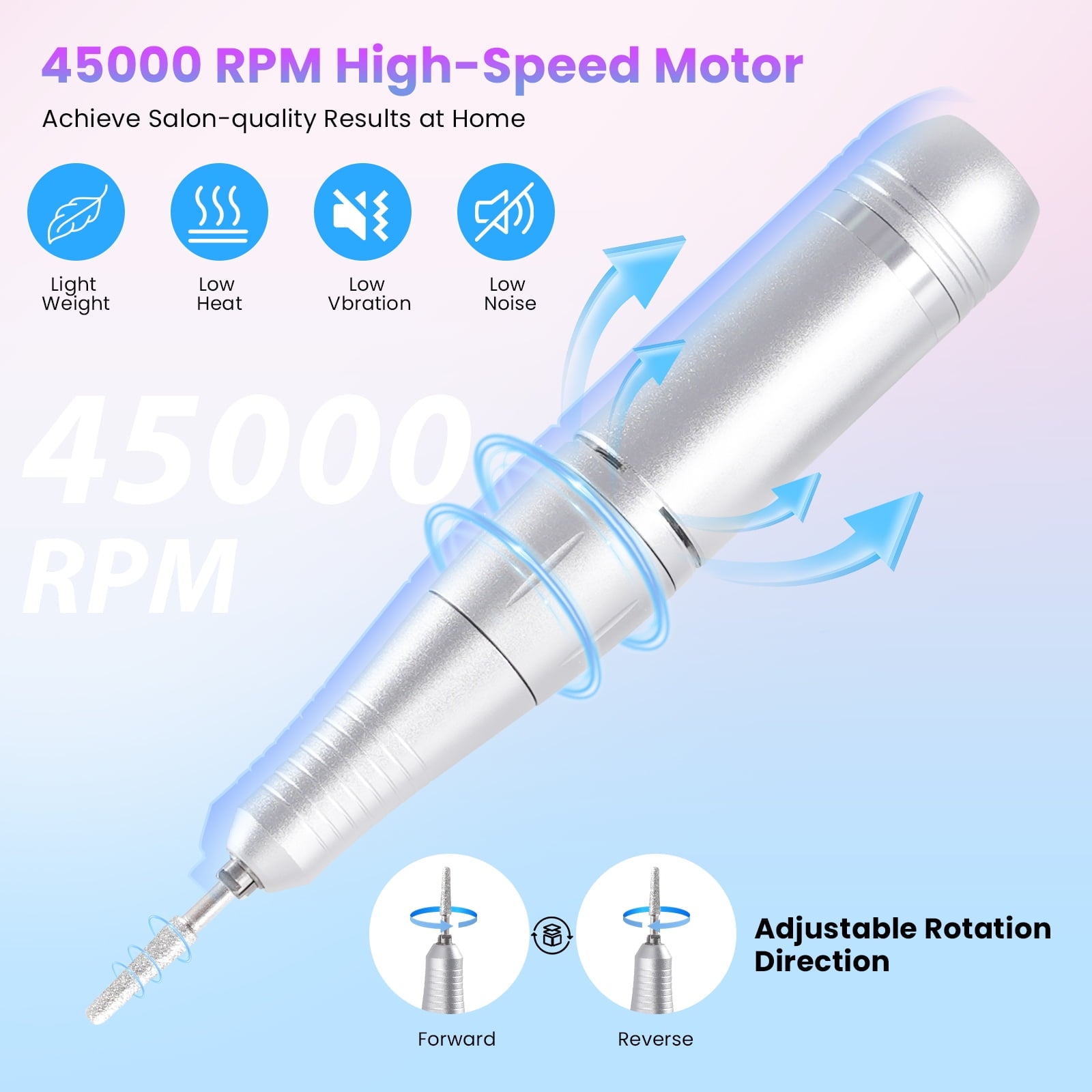 【45000 RPM Professional Nail Drill – High-Speed & Adjustable Precision】Upgrade your nail care routine with the FETERVIC professional nail drill kit, featuring a high-performance 45000 RPM motor with adjustable speed. This electric nail...